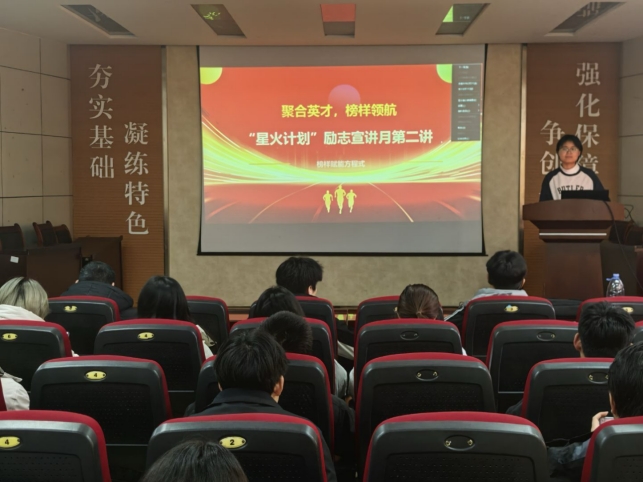 于J2-104开展了星火计划励志宣讲第二讲,本次宣讲由国奖获得者生物工程21-1张雨洁主讲。张雨洁首先进行了简短的自我介绍,系统地总结了大学四年的学习生活经历。通过参与科研工作,她锻炼了逻辑思考、文献阅读、信息采集、数据分析等多项能力,还特别提到了信息筛选这一重要方法。她强调,学有其法,建议同学们在学习时善用AI、信息网络等工具多渠道提升工作学习效率,从而提高学习成绩。此外,张雨洁还分享了自己大学四年丰富的文体生活,鼓励同学们积极参与体育活动,养成良好的生活学习习惯。通过张雨洁的分享,同学们对大学生活有了更全面且深入的认识,相信这些宝贵的经验会像一盏盏明灯,为同学们照亮未来的道路,帮助他们在大学生活中少走弯路,更加自信从容地去探索、去成长,书写属于自己的精彩篇章。(报道:林泓谕)