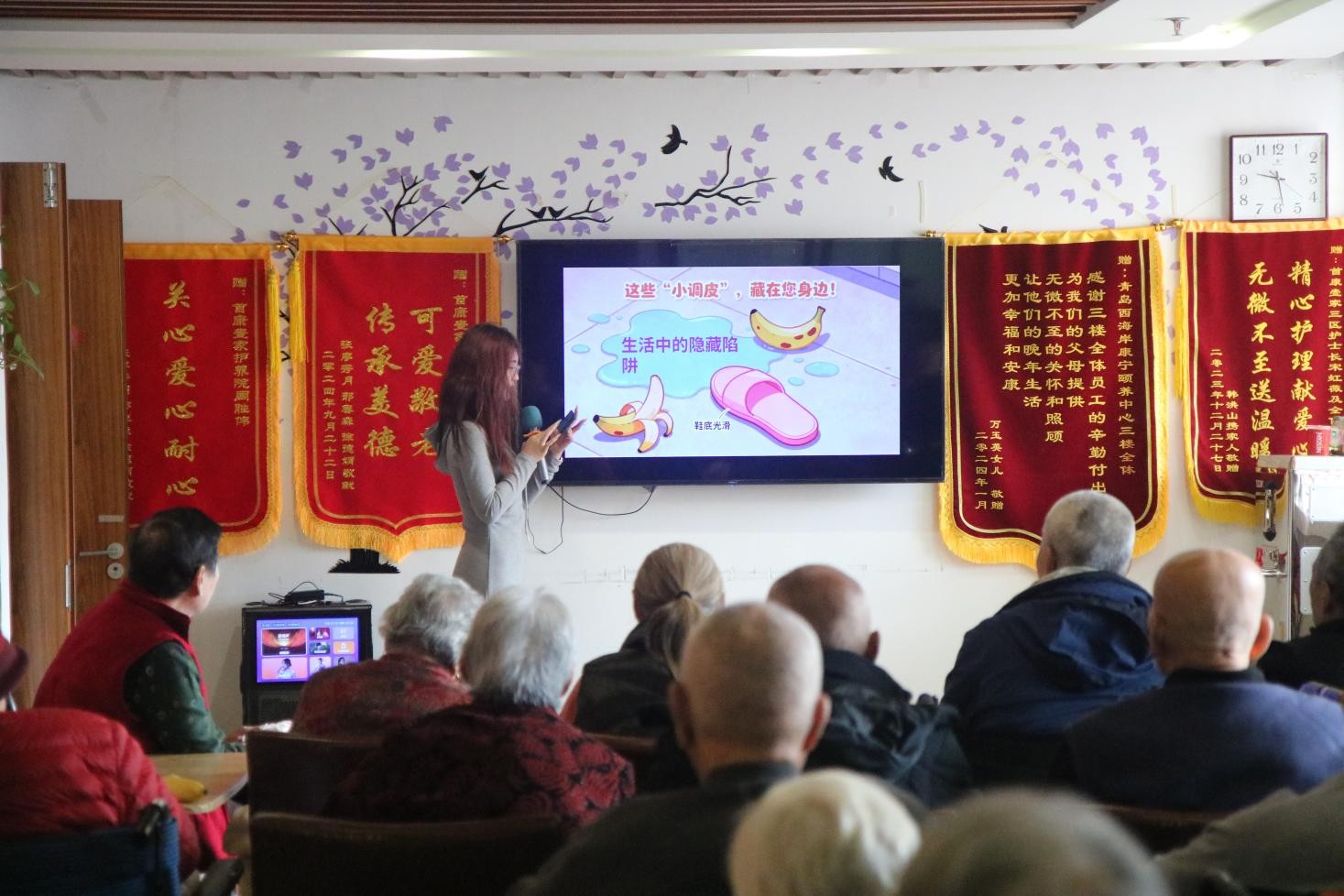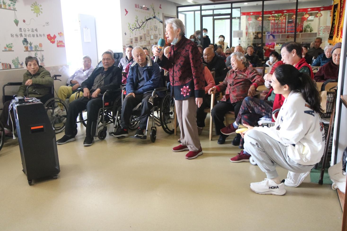 活动过程中,志愿者们以通俗易懂的语言,围绕预防电信诈骗、食品安全、防倒防摔三大主题开展宣讲,结合实际案例,深入浅出地为老人们讲解相关知识,帮助他们提升安全防护意识。宣讲结束后,志愿者和女童们将亲手制作的折纸、扭扭棒手作作为礼物送给老人,并带领老人们合唱经典老歌,现场气氛温馨而热烈。活动尾声,志愿者们主动协助护工为老人分发餐食和餐具,用实际行动践行志愿服务精神。