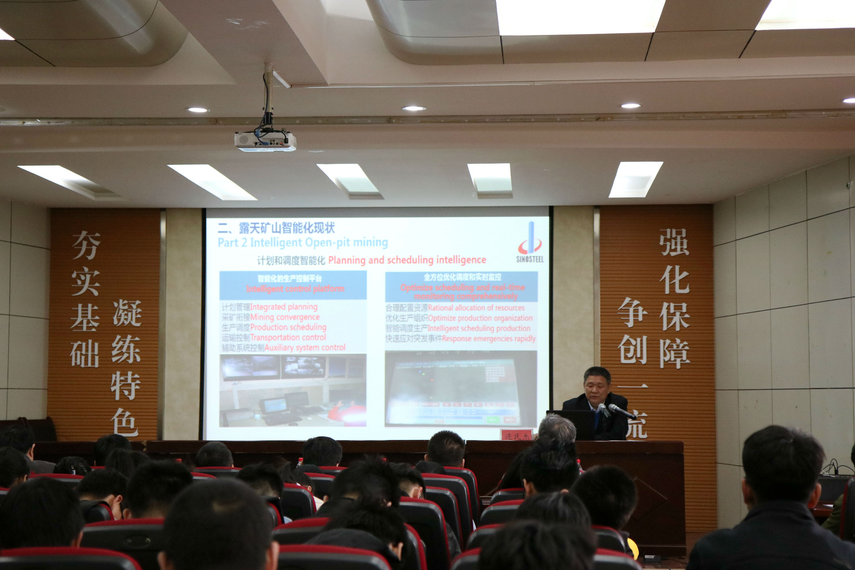 聘任仪式结束后,连民杰教授为现场师生做了一场题为“中国冶金矿山智能化建设现状及人才需求”的学术报告会。民杰教授从露天矿山、地下矿山、选矿厂的智能化现状与管控系统架构出发,全面客观地分析了我国冶金矿山智能化建设现状。通俗朴实的语言,讲解了有关矿山智能化的专业知识。连教授结合自己丰富的专业知识与工作阅历,对比了国内外矿山企业在智能化建设的发展现状。连教授就智能矿山管理创新与矿业人才培养方向两方面,对比分析了新旧矿山管理的优缺点,同时指出智能化矿山对人才的需求提出了更高的标准,即一专多能型人才。他表示我国矿山智能化任重而道远,应抓住新一代信息、人工智能带来的发展机遇,用智能化建设迎接矿业新的“春天”。报告结束后,师生们在现场提问求教,连教授一一予以耐心解答。在回答“课程安排及学生具体发展方向选择时,连教授说道:“传统专业知识如同基础,信息化与智能化好比手段,要在自身基础过硬的基础上,更好地发展信息化与智能化。”
