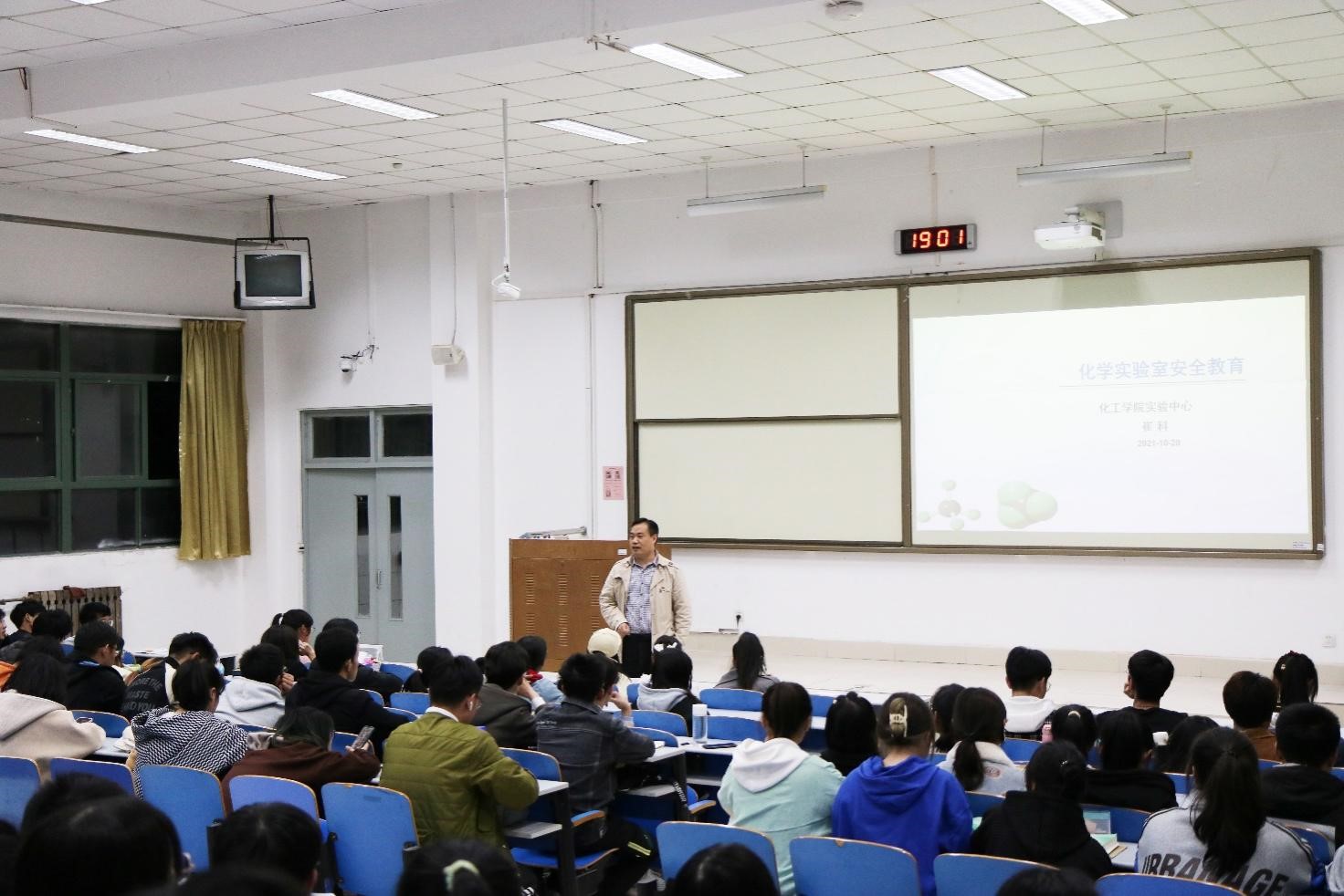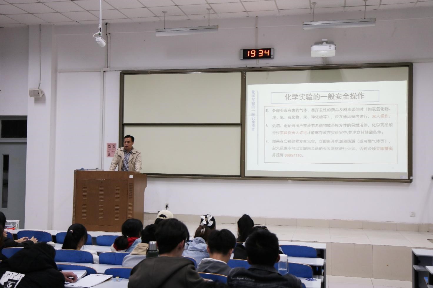 为进一步加强新生的实验室安全意识,有效防范实验室安全事故,提高实验室人员安全意识和处理突发问题的能力,确保校园安全稳定,10月28日晚,现场足球成绩 举办以化学实验室安全为主题的安全教育讲座,现场足球成绩 实验中心崔科老师担任主讲,全体2021级新生到场聆听。